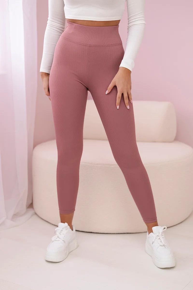 Pásikavé legínsové nohavice tmavo ružová univerzálne