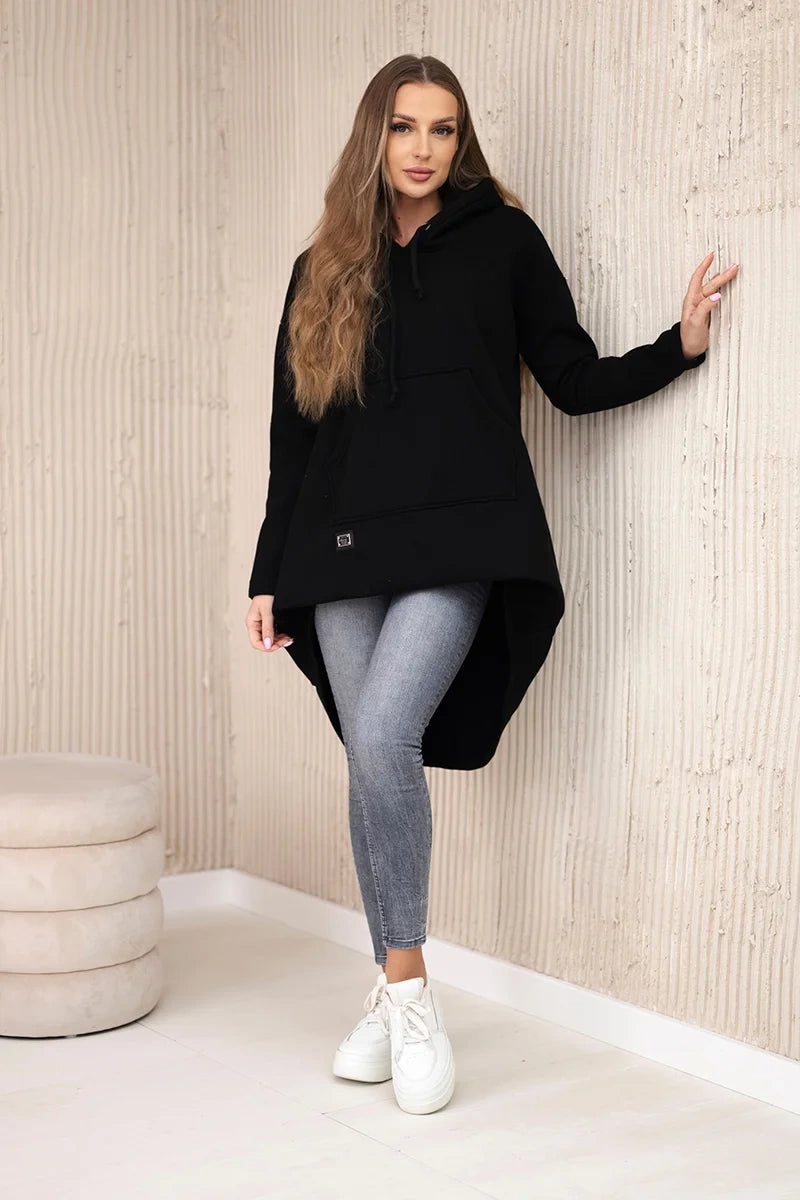 Polstrovaná mikina s dlhým chrbtom a kapucňou čierna univerzálne
