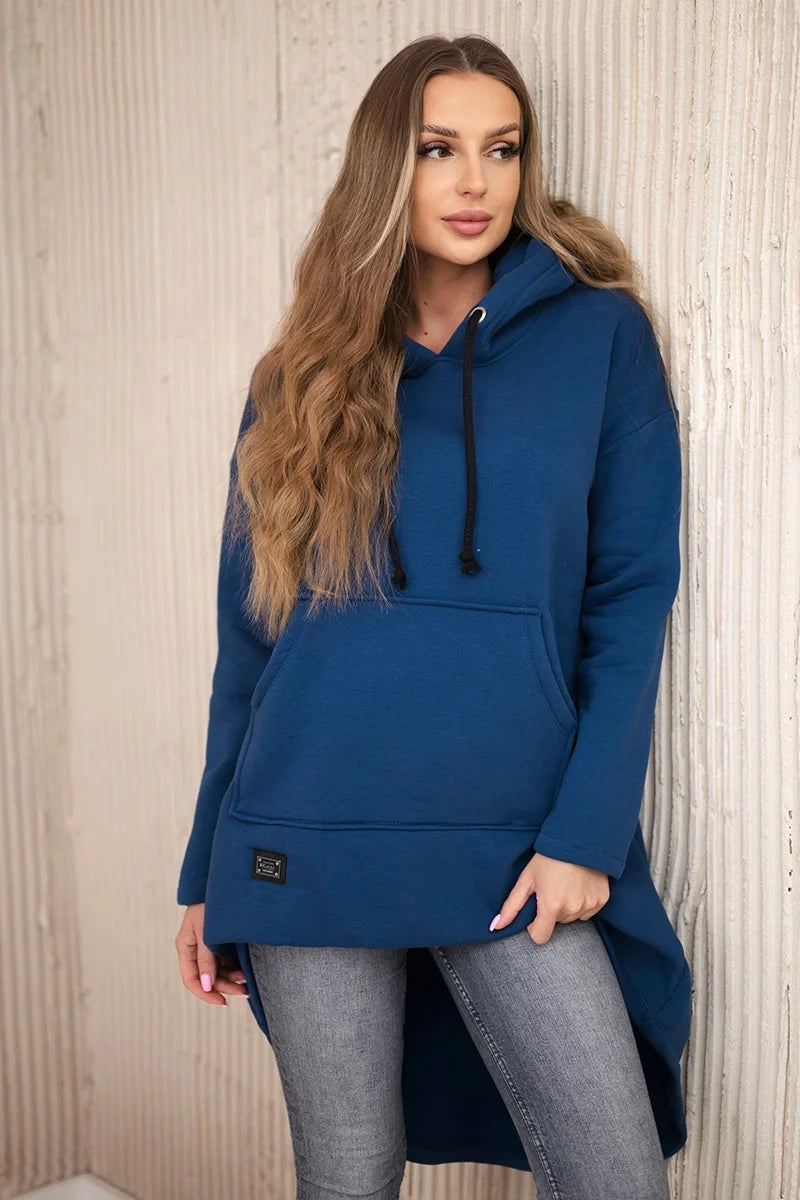 Polstrovaná mikina s dlhým chrbtom a kapucňou námornícka modrá univerzálne