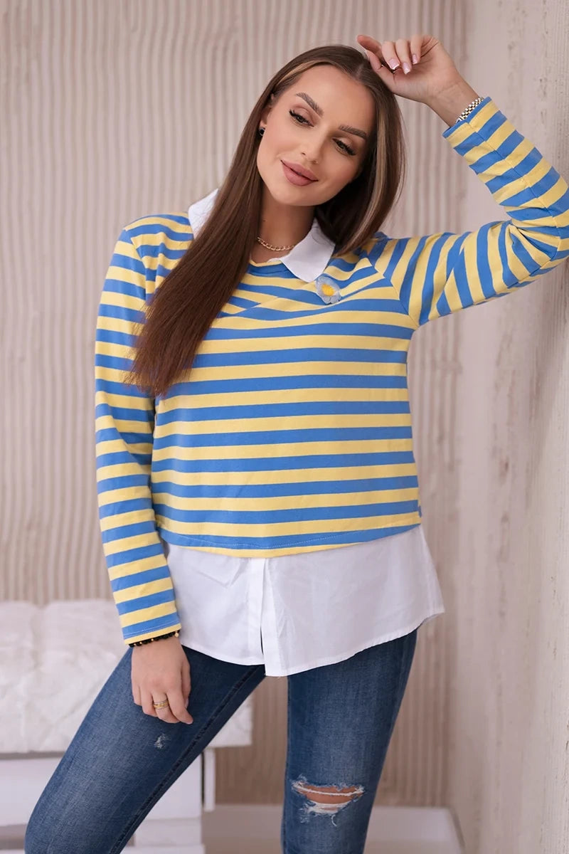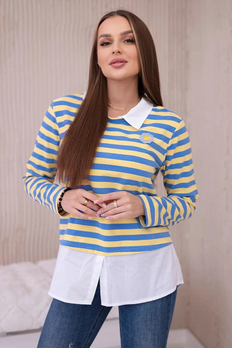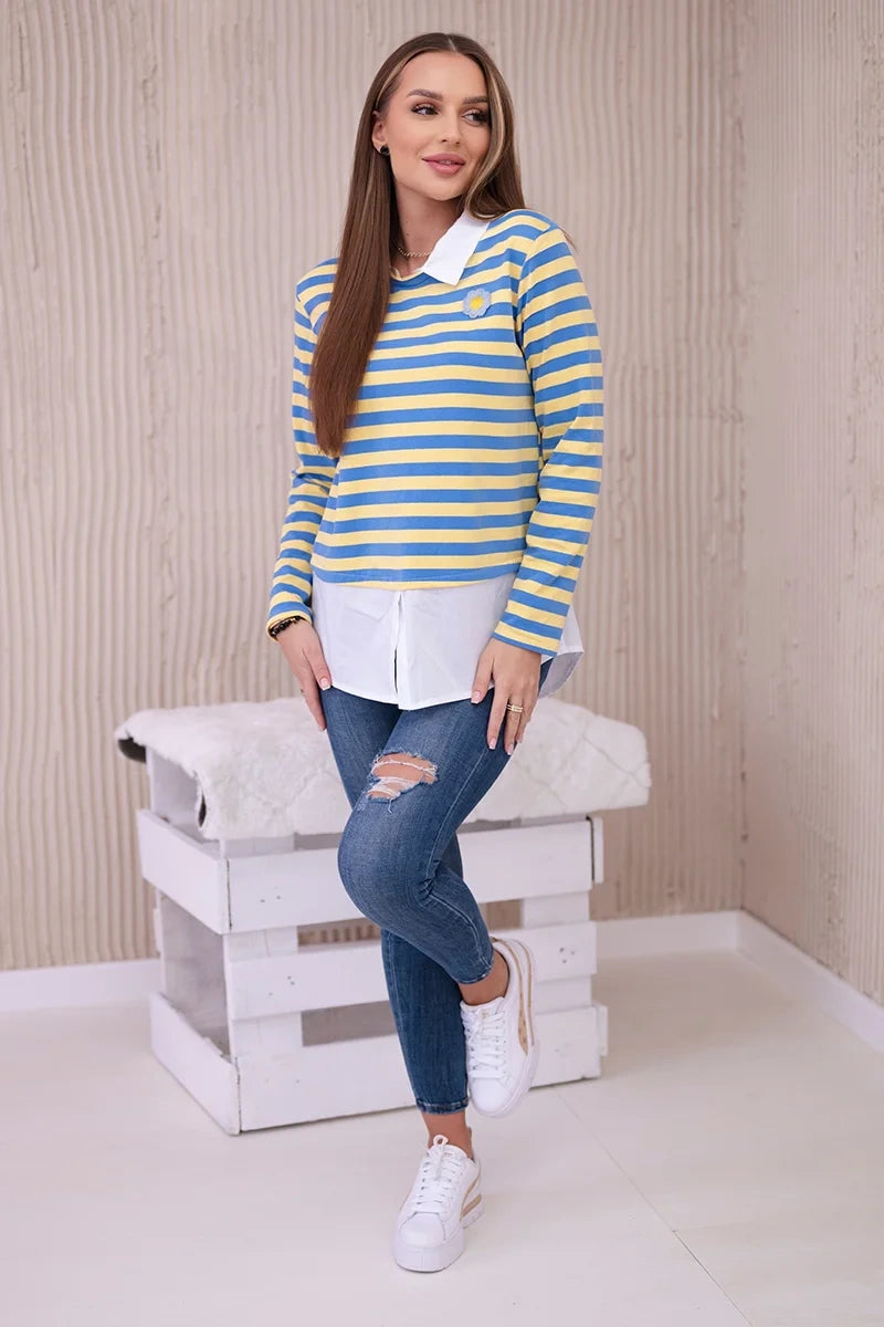 Pruhovaná bavlnená blúzka s golierom džínsovina+žltá univerzálne