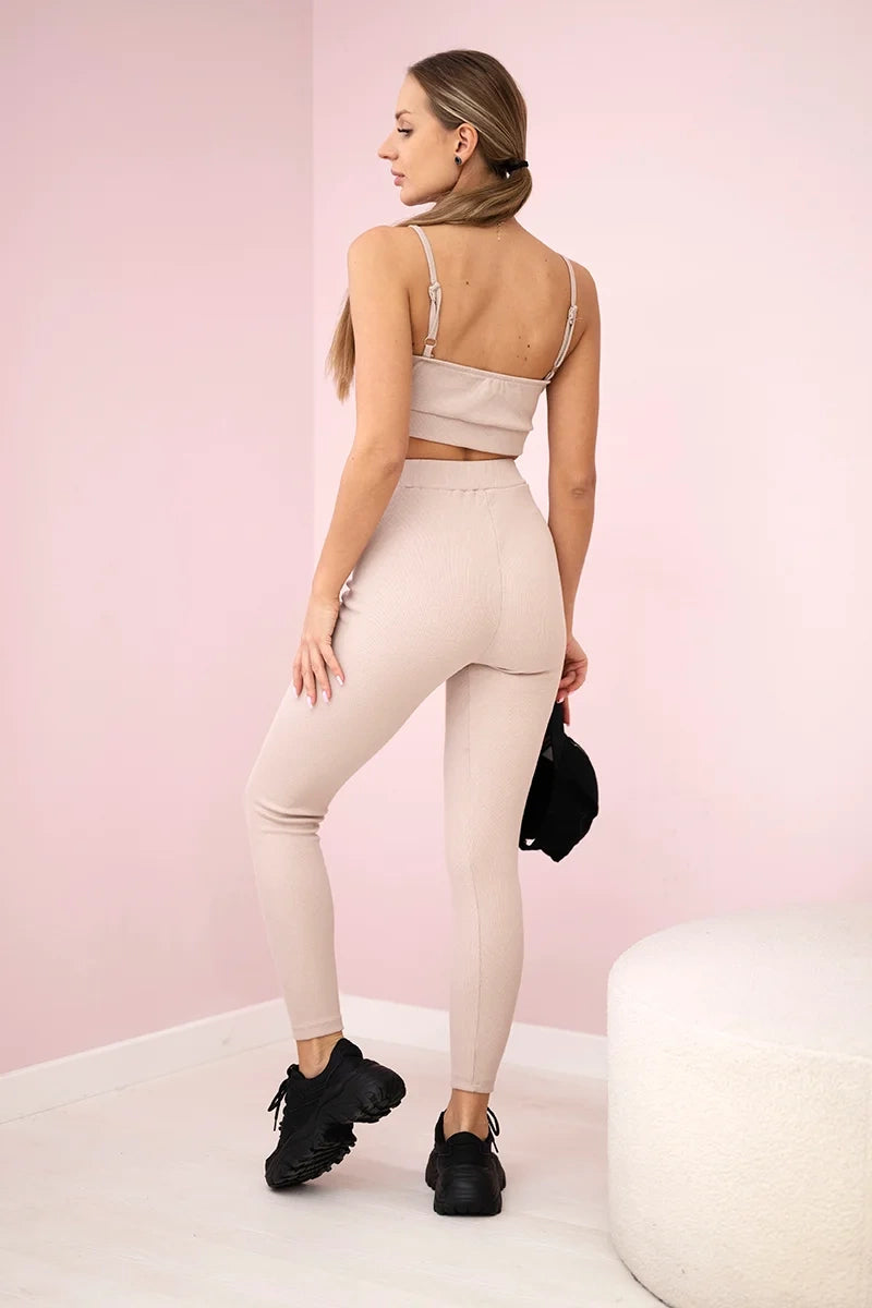 Pruhovaný top komplet s blúzkou béžová univerzálne