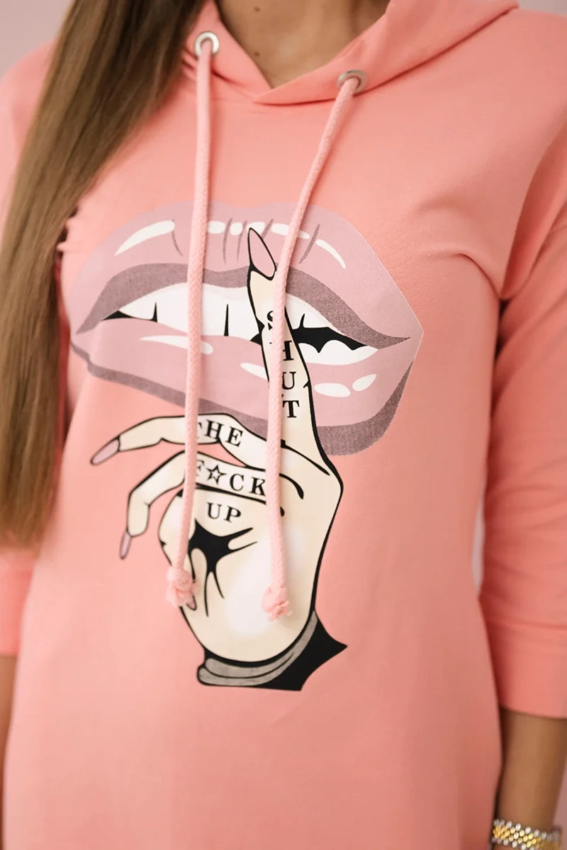 Šaty s dlhším chrbtom a farebnou potlačou marhuľa univerzálne