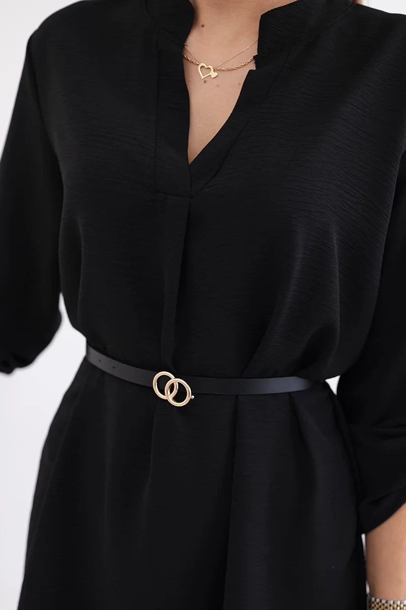 Šaty s dlhším chrbtom a opaskom čierny univerzálne