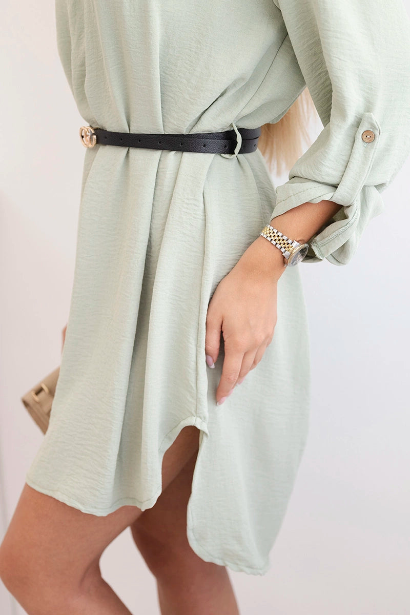 Šaty s dlhším chrbtom a opaskom tmavá mäta univerzálne