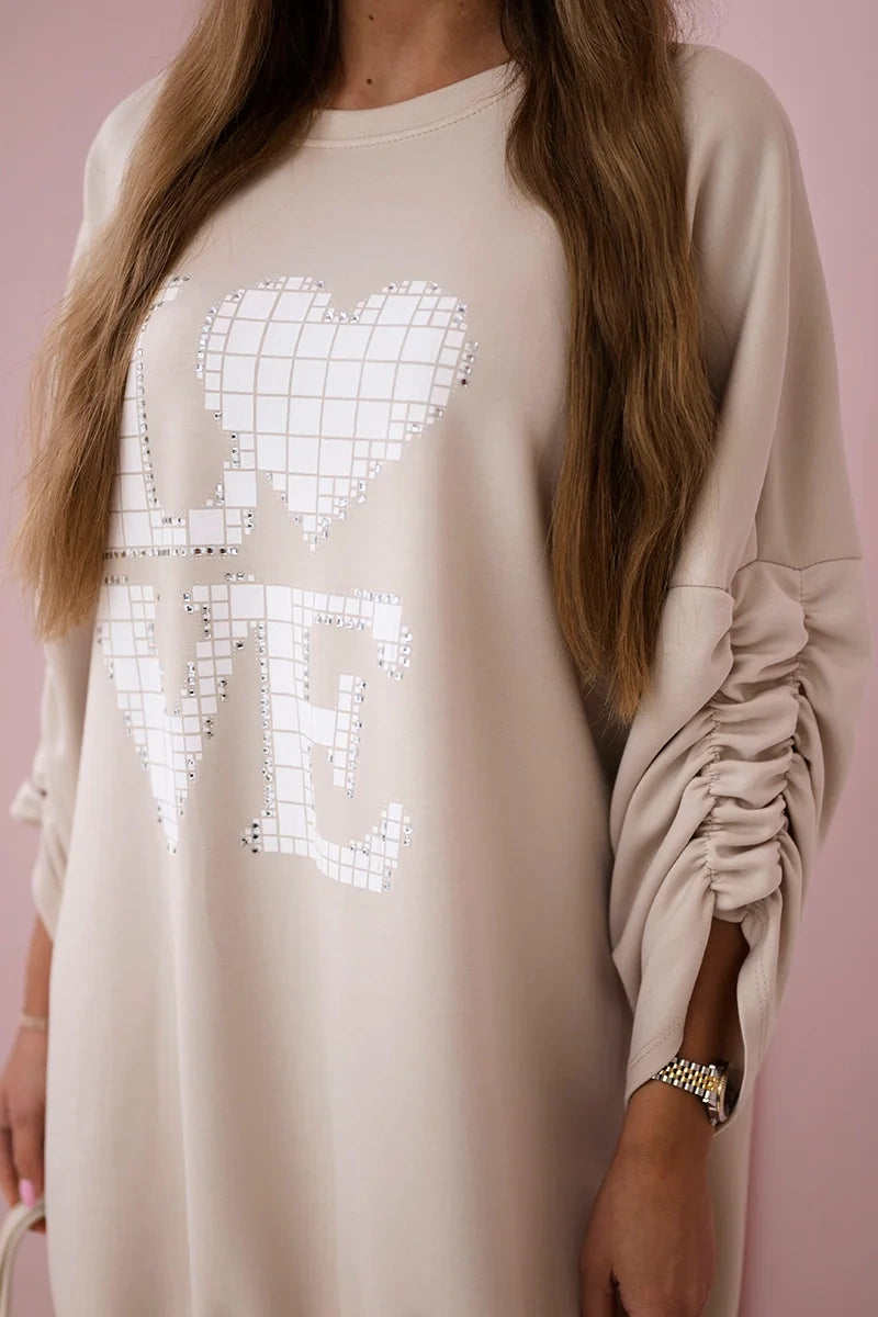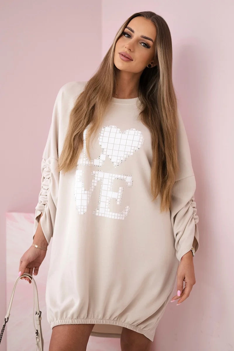 Šaty s dlhším chrbtom a potlačou maslová látka béžový univerzálne