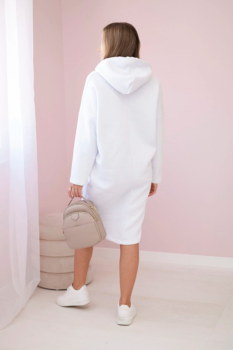 Šaty s kapucňou a bočným rozparkom biela univerzálne