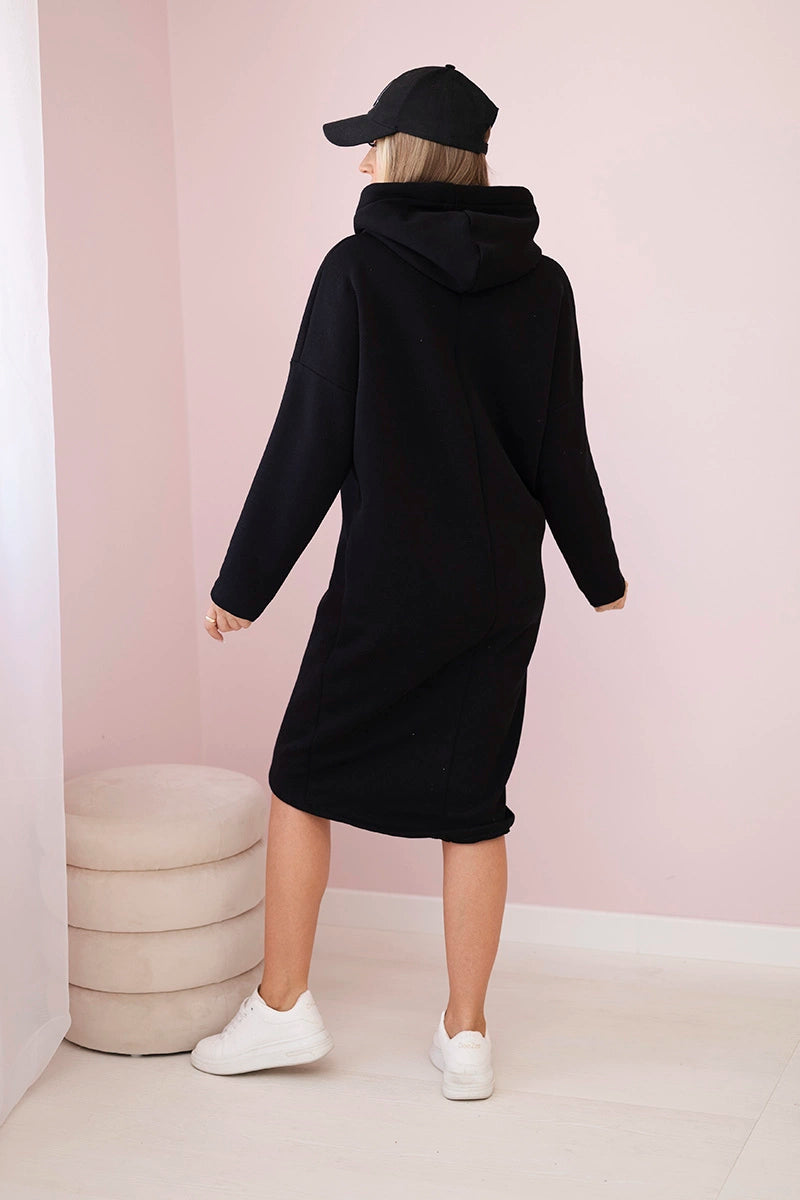 Šaty s kapucňou a bočným rozparkom čierna univerzálne