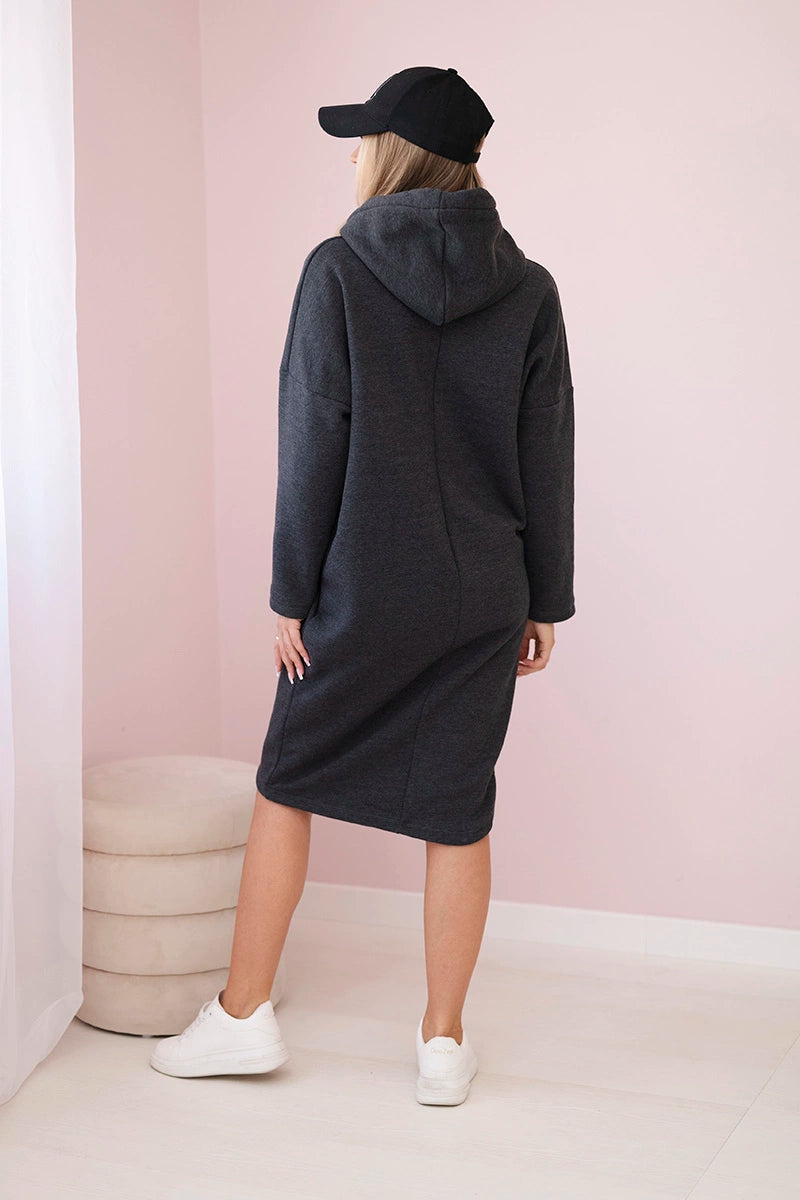 Šaty s kapucňou a bočným rozparkom grafitová melanž univerzálne