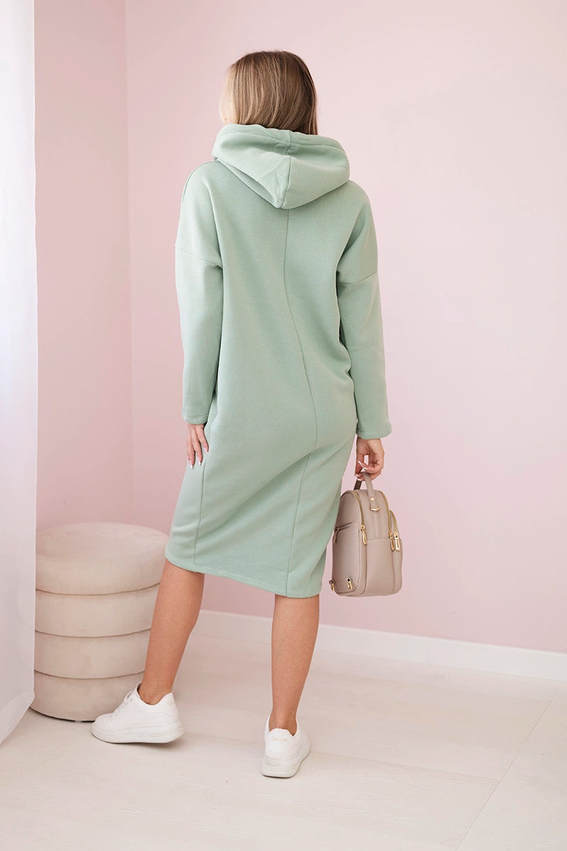 Šaty s kapucňou a bočným rozparkom tmavá mäta univerzálne