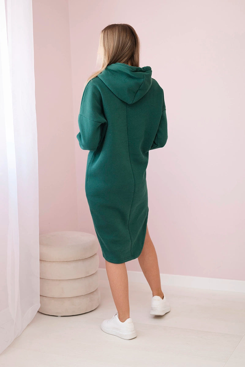 Šaty s kapucňou a bočným rozparkom tmavý zelená univerzálne