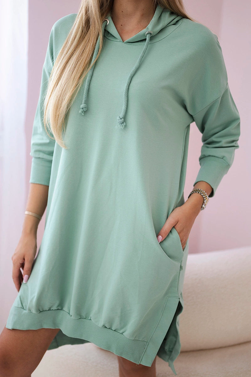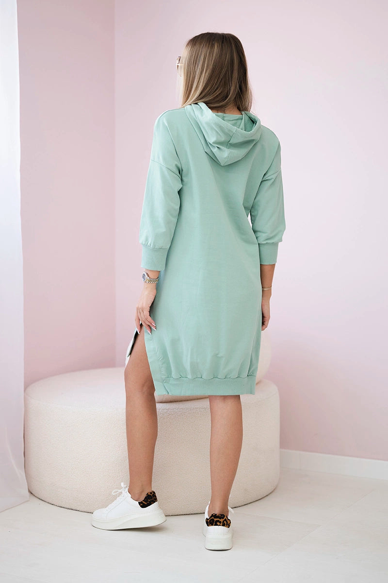 Šaty s kapucňou a dlhšími chrbtom tmavá mäta univerzálne