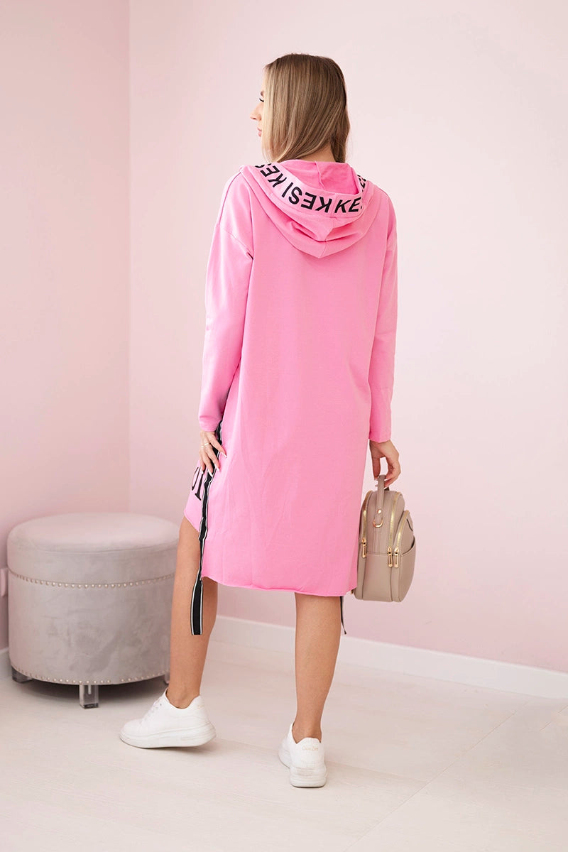 Šaty s kapucňou a potlačou svetlo ružová univerzálne