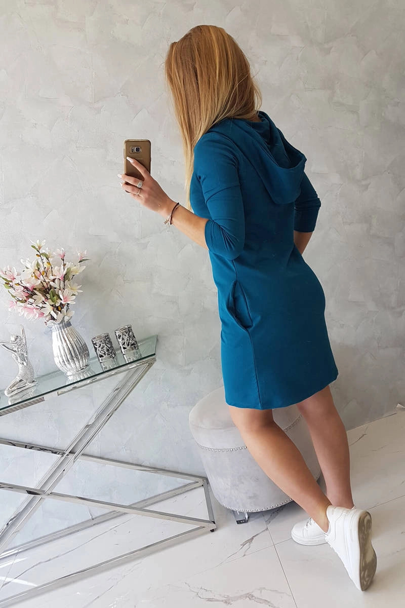 Šaty s kapucňou a vreckami farba mora univerzálne