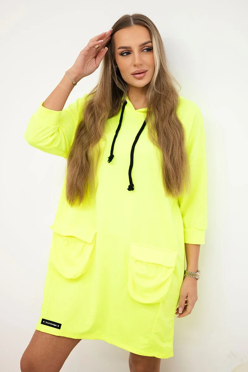 Šaty s kapucňou žltý neón univerzálne