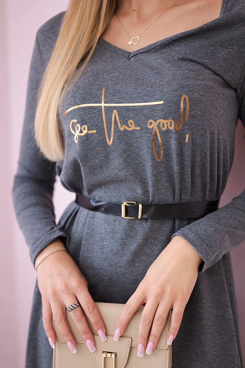 Šaty s ozdobným opaskom a nápisom grafit univerzálne