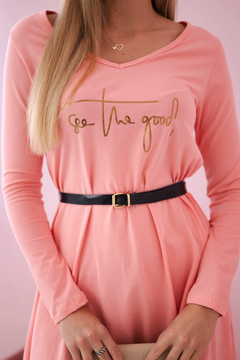 Šaty s ozdobným opaskom a nápisom marhuľa univerzálne