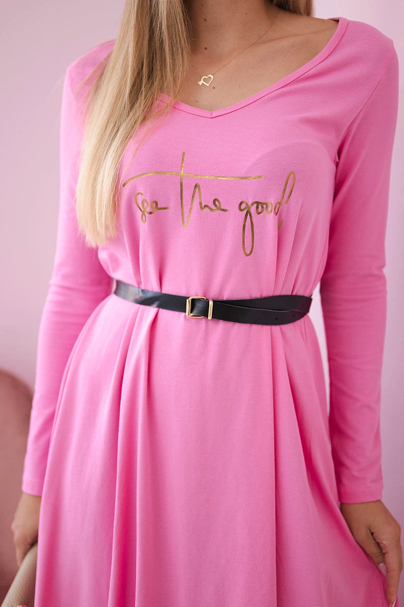 Šaty s ozdobným opaskom a nápisom svetlo ružová univerzálne