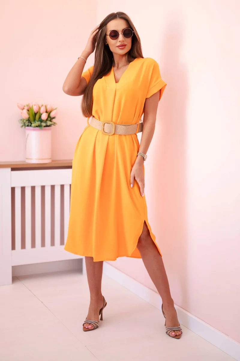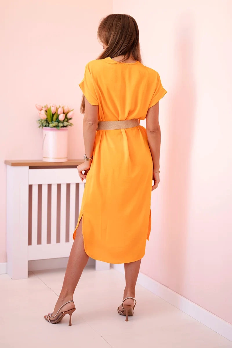 Šaty s ozdobným opaskom oranžová univerzálne