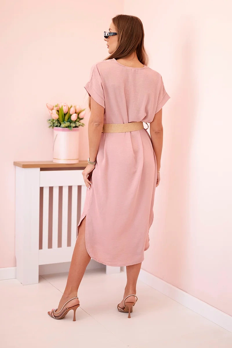 Šaty s ozdobným opaskom tmavá púdrovo ružová univerzálne