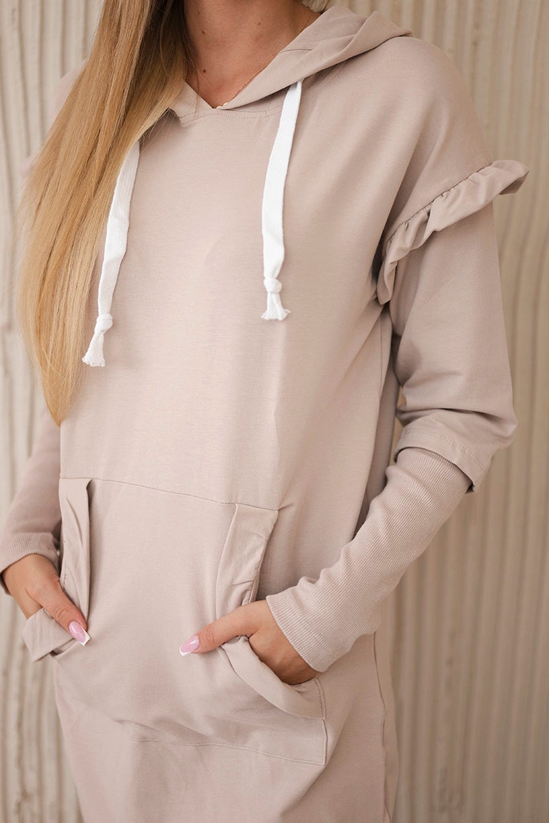 Šaty s ozdobnými volánmi a kapucňou béžová univerzálne