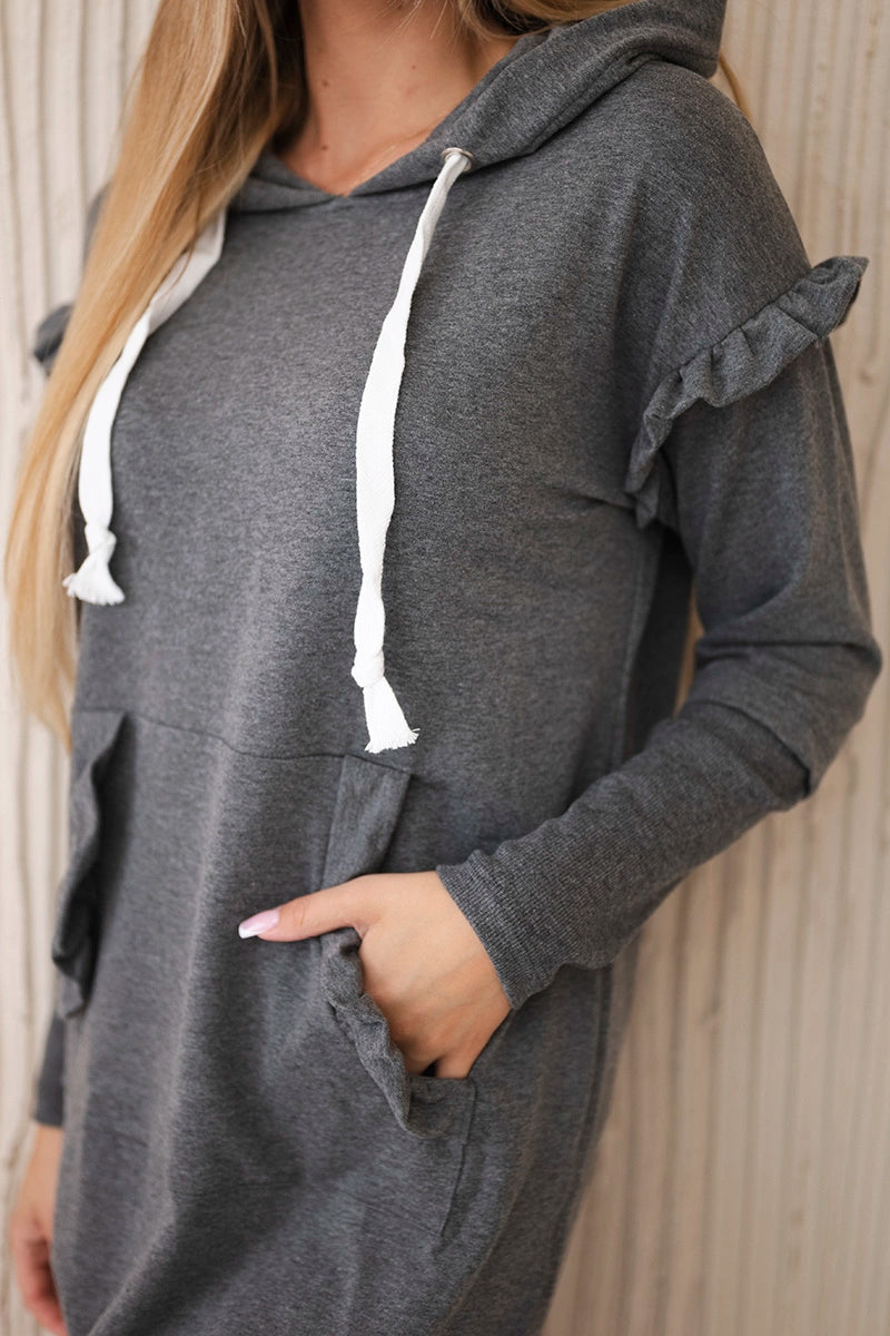 Šaty s ozdobnými volánmi a kapucňou grafit univerzálne