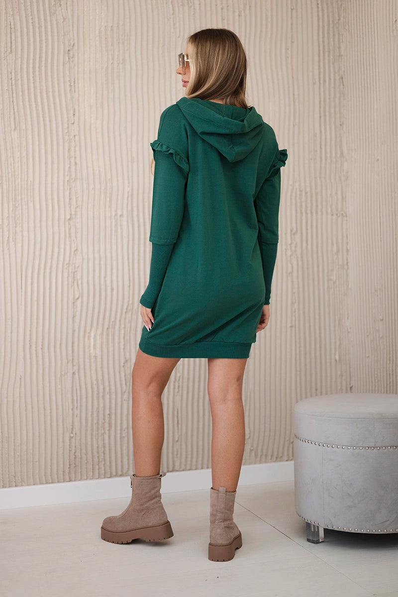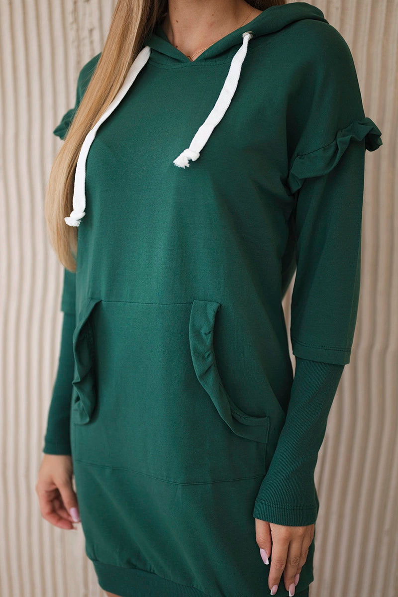 Šaty s ozdobnými volánmi a kapucňou zelená univerzálne