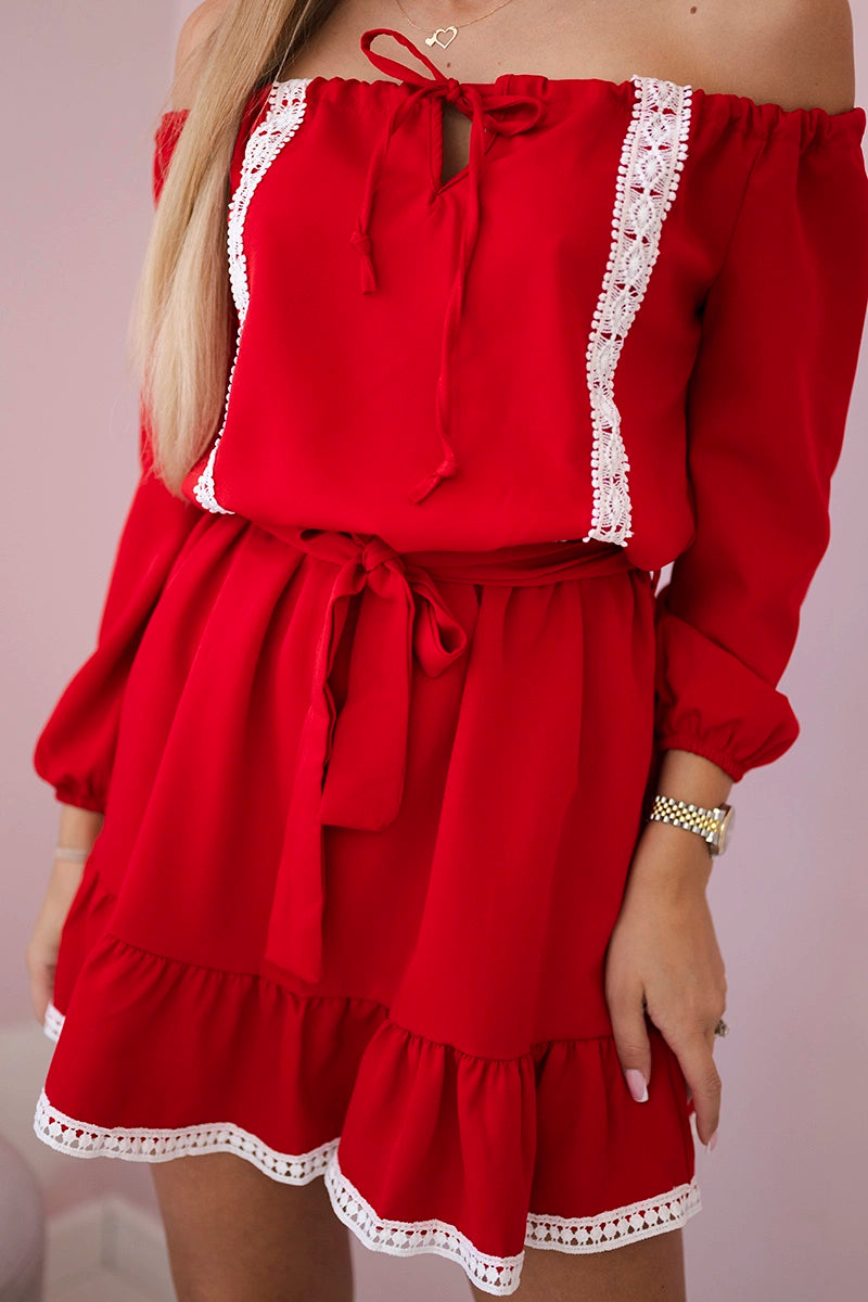 Šaty s rovným výstrihom a čipky červená univerzálne