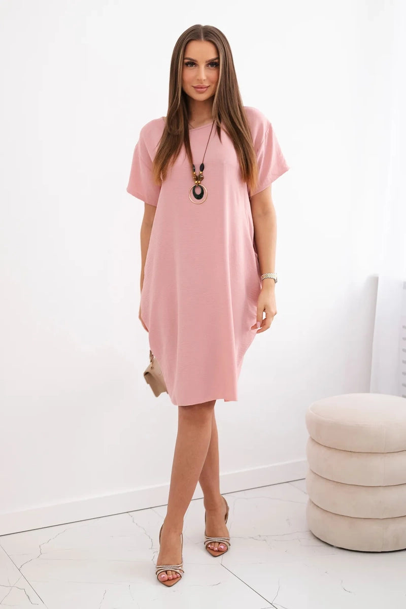 Šaty s vreckami a príveskom tmavý púder ružový univerzálne