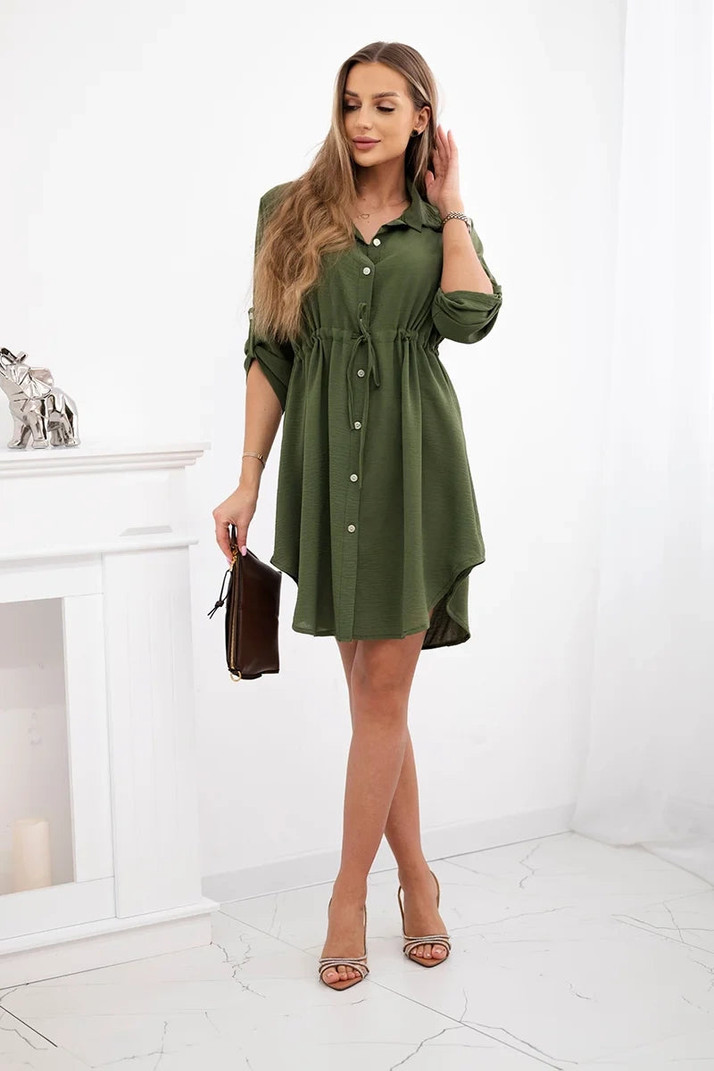 Šaty so zapínaním na gombíky a kravatou v páse khaki univerzálne