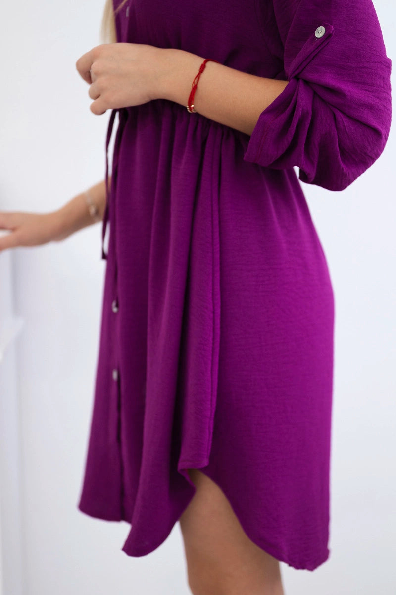 Šaty so zapínaním na gombíky a kravatou v páse tmavo fialová univerzálne