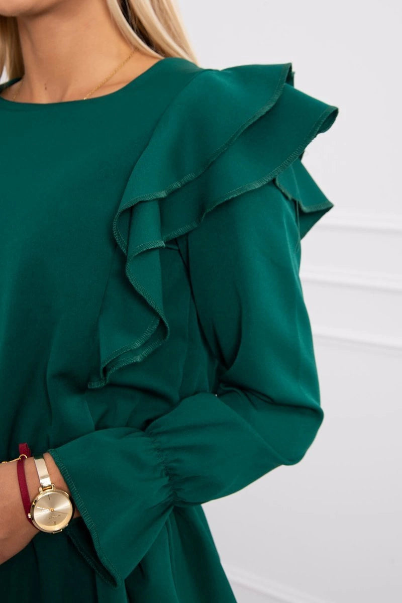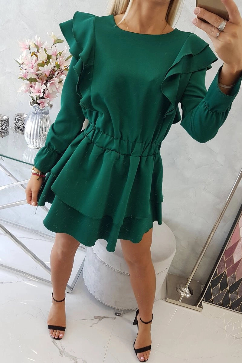 Šaty so zvislými vlnami horčica tmavozelený univerzálne