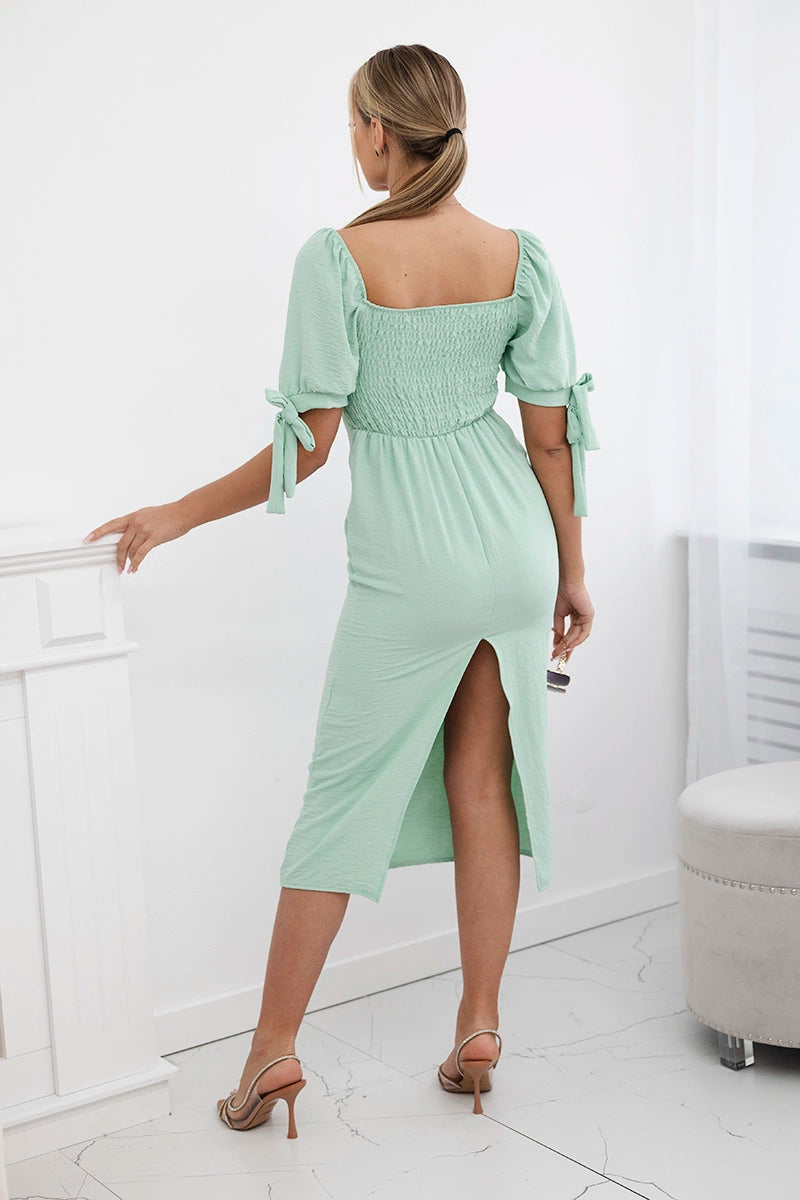 Šaty volánové vzadu so zviazanými rukávmi tmavá mäta univerzálne