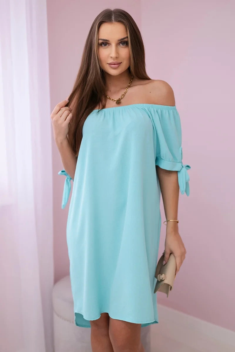 Šaty zaviazané na rukávoch svetlá mäta univerzálne