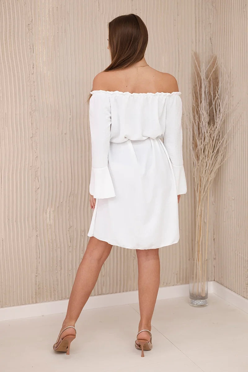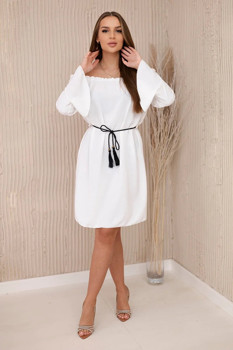 Šaty zviazané v páse šnúrkou ecru univerzálne