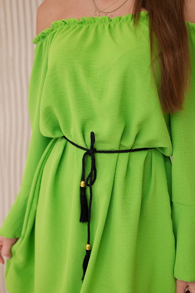 Šaty zviazané v páse šnúrkou jasne zelená univerzálne