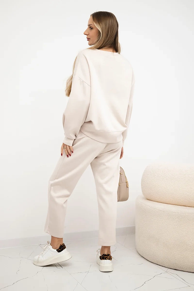 Set maslová látka mikinové + nohavice svetlo béžová univerzálne