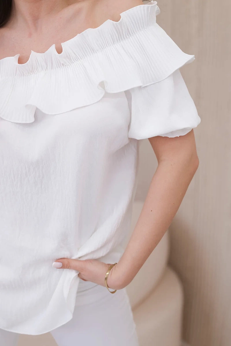 Španielska blúzka s ozdobným volánom biely univerzálne