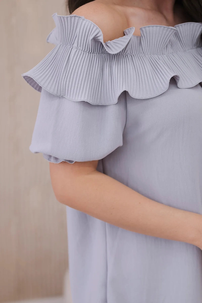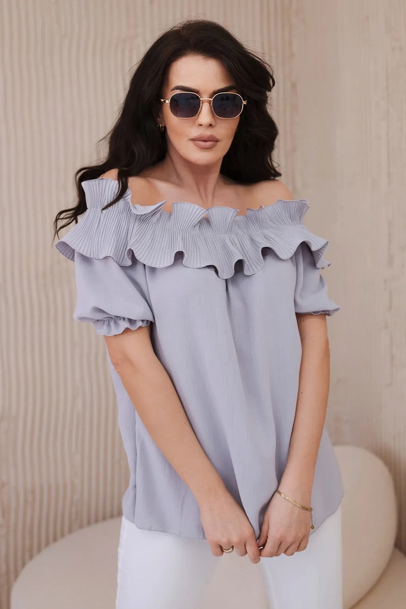Španielska blúzka s ozdobným volánom sivý univerzálne