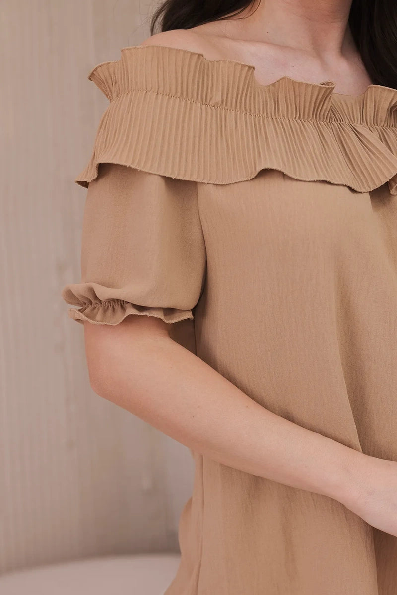 Španielska blúzka s ozdobným volánom Ťava univerzálne