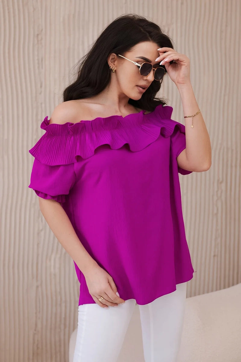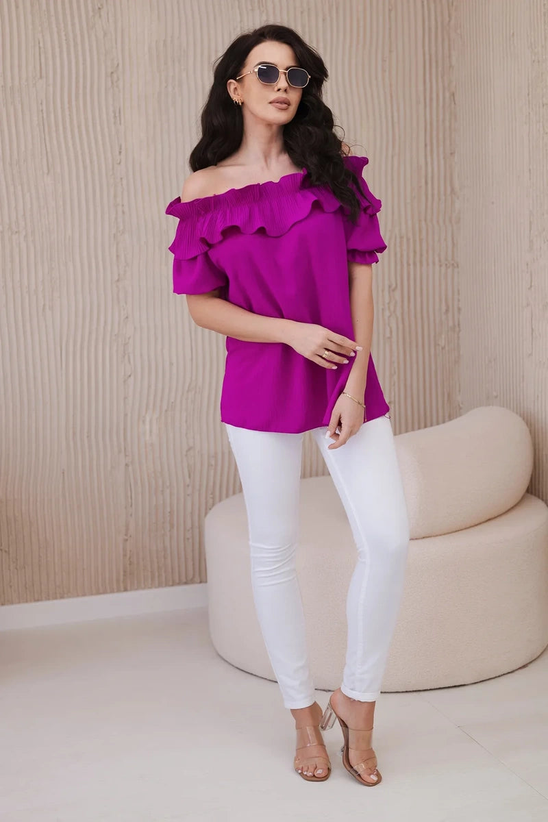 Španielska blúzka s ozdobným volánom tmavo fialová univerzálne