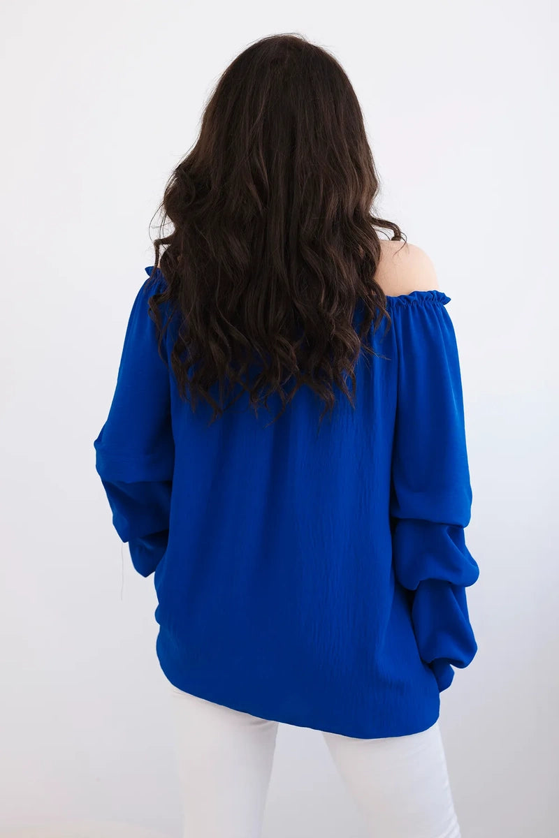 Španielska blúzka s ozdobnými rukávmi chrpa modrá univerzálne