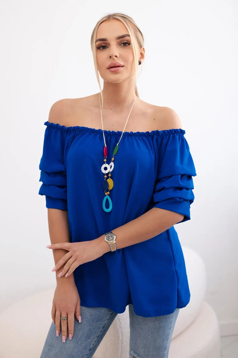 Španielska blúzka s ozdobnými rukávmi chrpa modrá univerzálne
