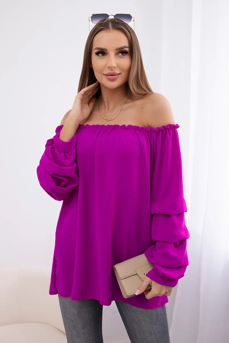 Španielska blúzka s ozdobnými rukávmi tmavo fialová univerzálne