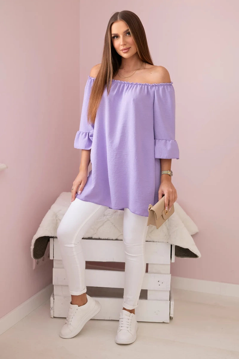 Španielska blúzka s volánmi na rukáve svetlofialová univerzálne