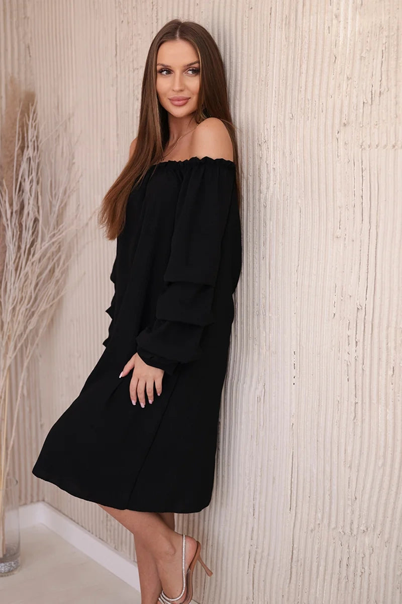 Španielske šaty s ozdobnými rukávmi čierny univerzálne