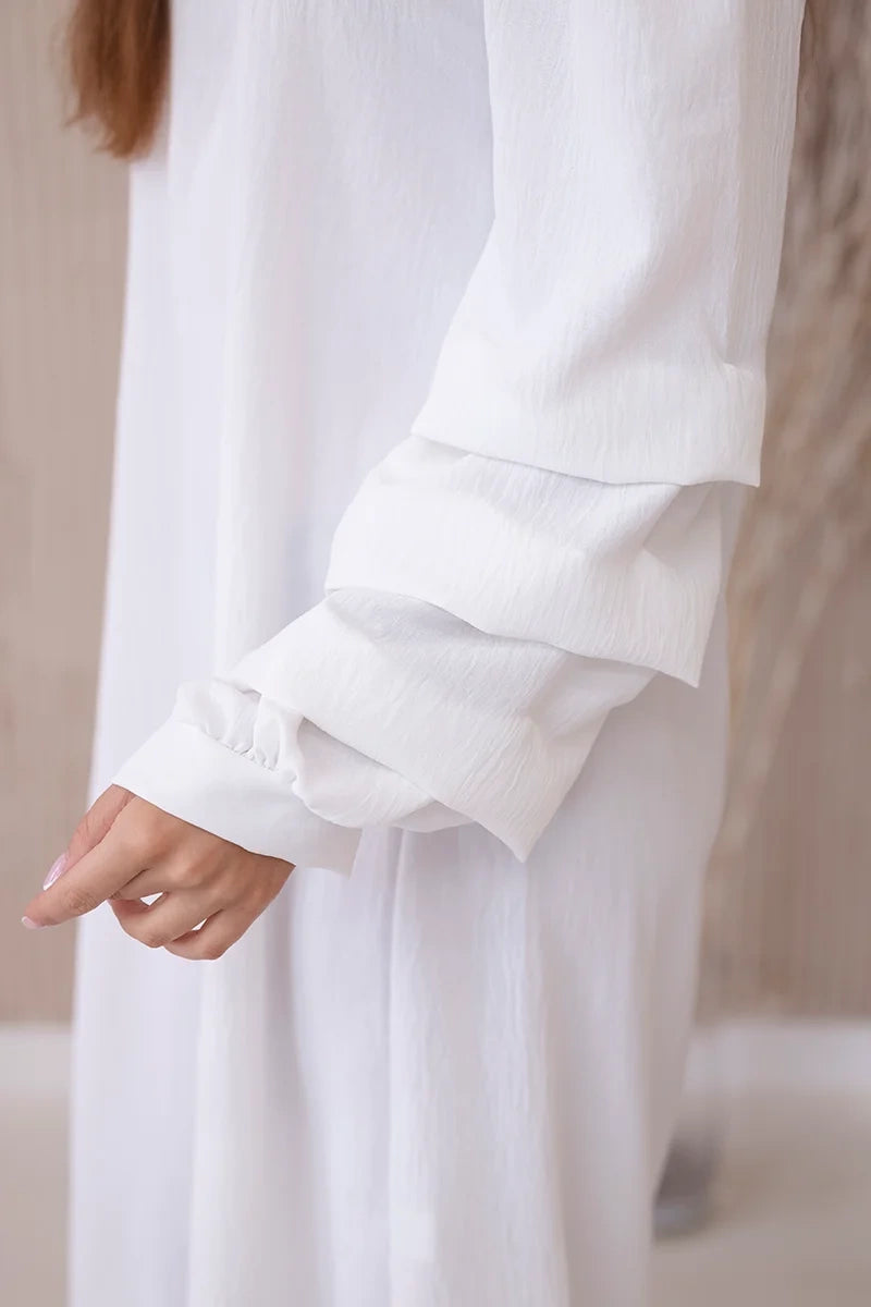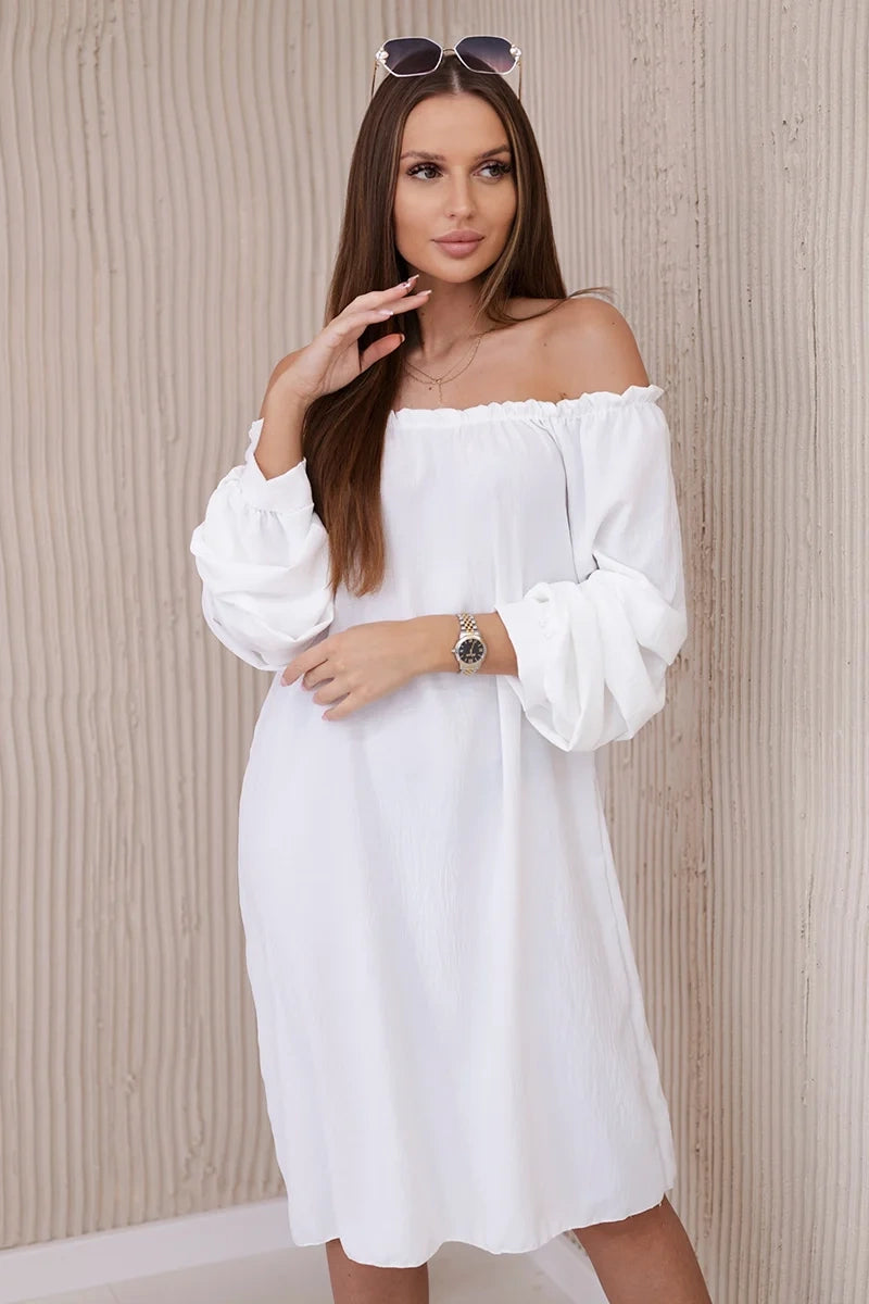 Španielske šaty s ozdobnými rukávmi ecru univerzálne