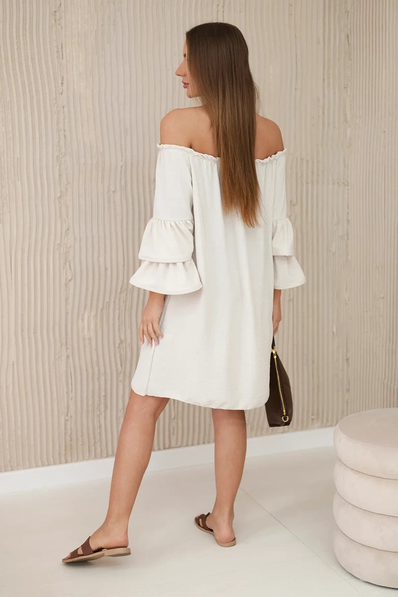 Španielske šaty s volánmi na rukáve béžový univerzálne