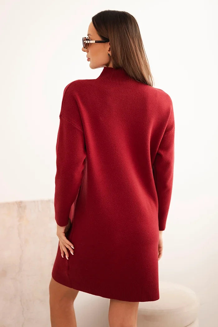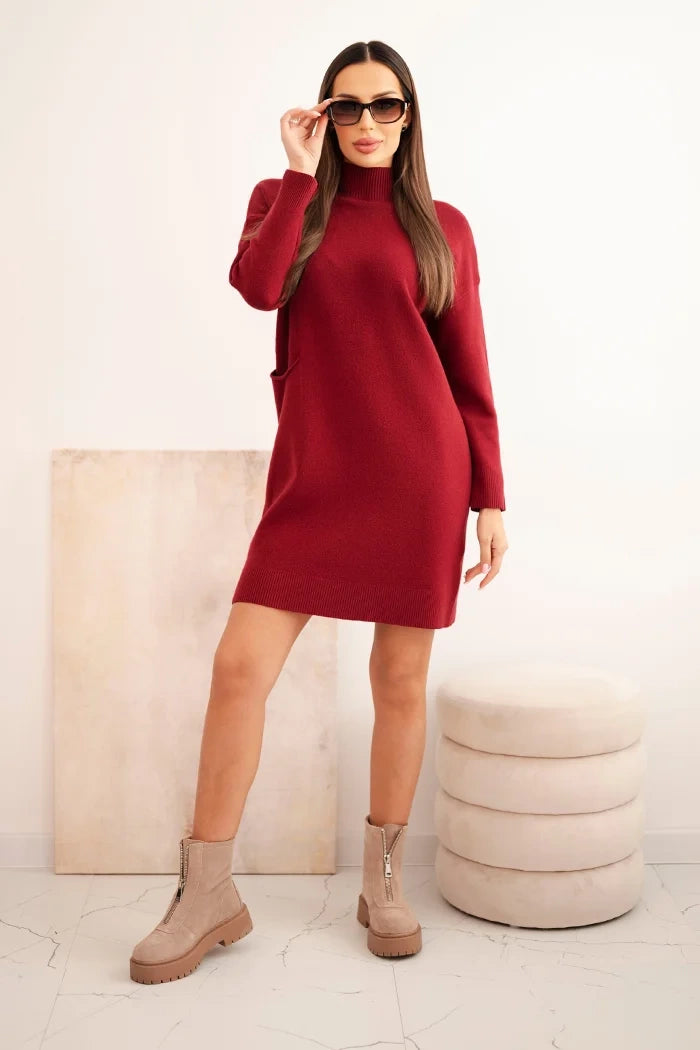 Sukňa dámska pletená s golierom a vreckom bordová univerzálne