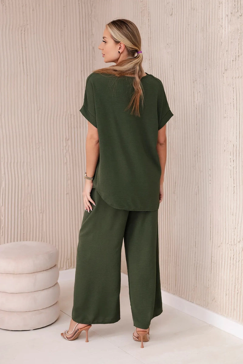 Súprava s náhrdelníkom blúzkové + nohavice khaki univerzálne