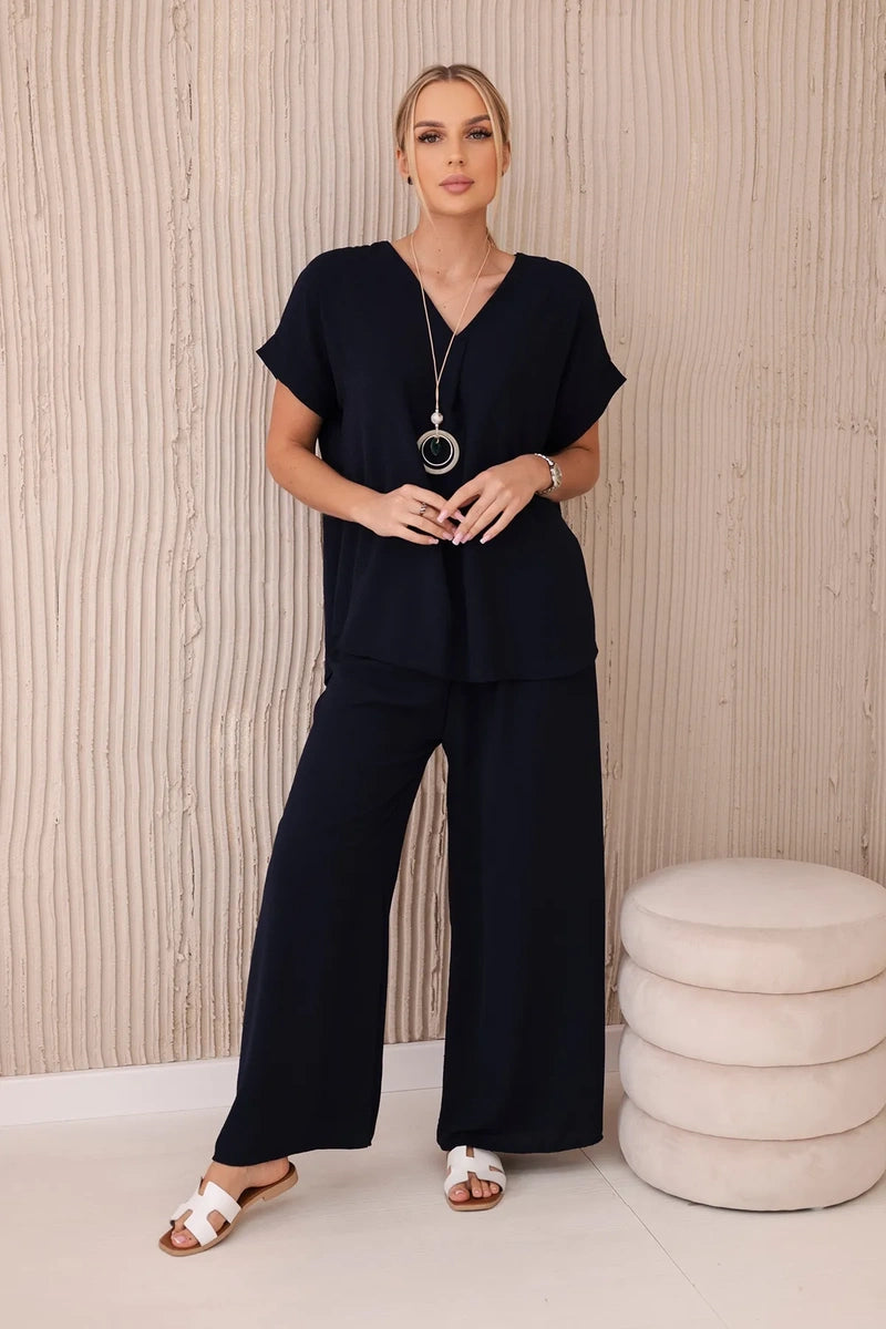 Súprava s náhrdelníkom blúzkové + nohavice námornícka modrá univerzálne